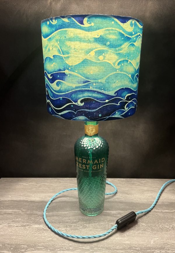 Here is my latest bottle lamp; a sumptuous combination of blues and greens, lending themselves so nicely to the fading green of the limited run Mermaid gin bottle, made across the water on the Isle of Wight.