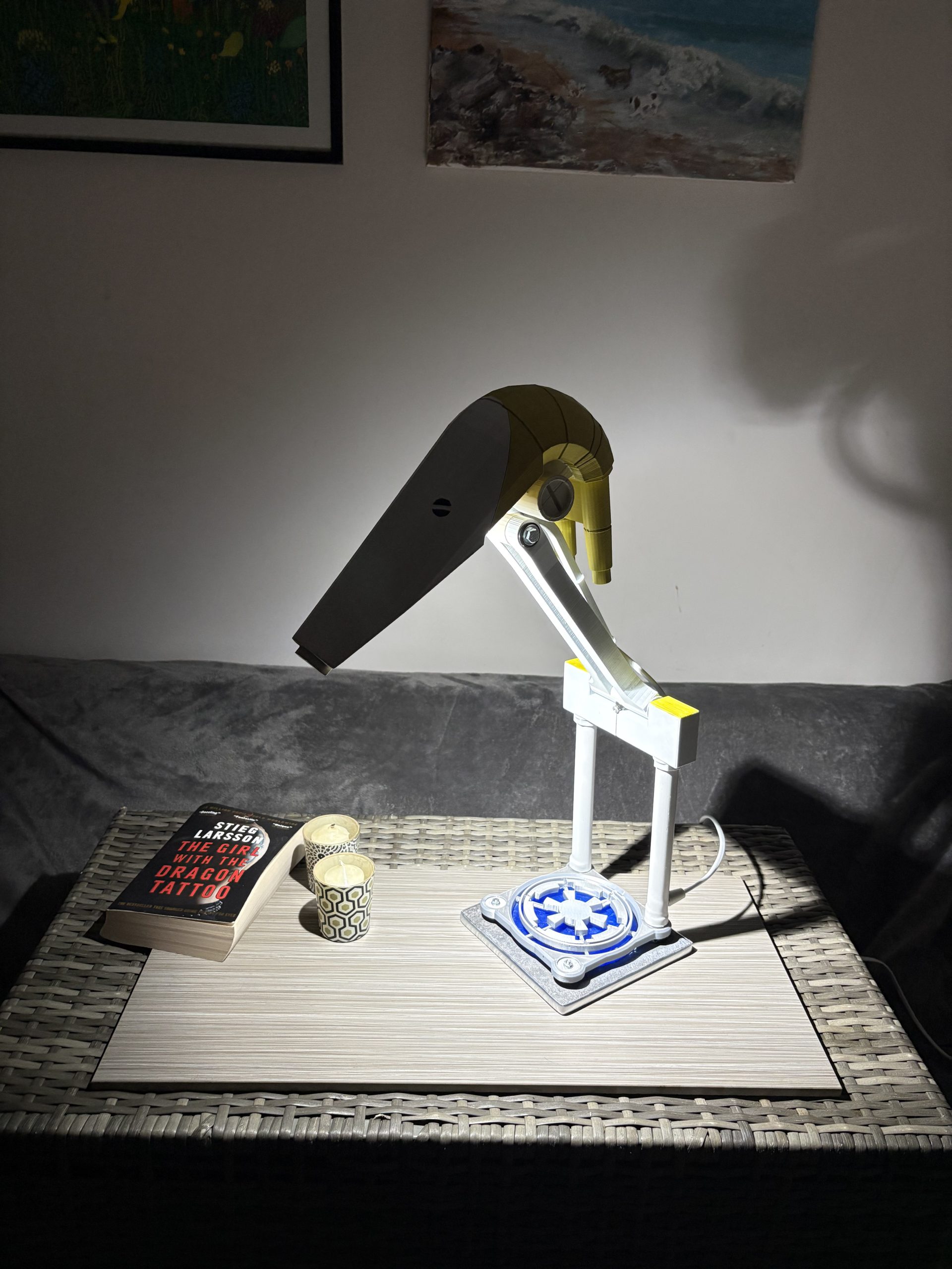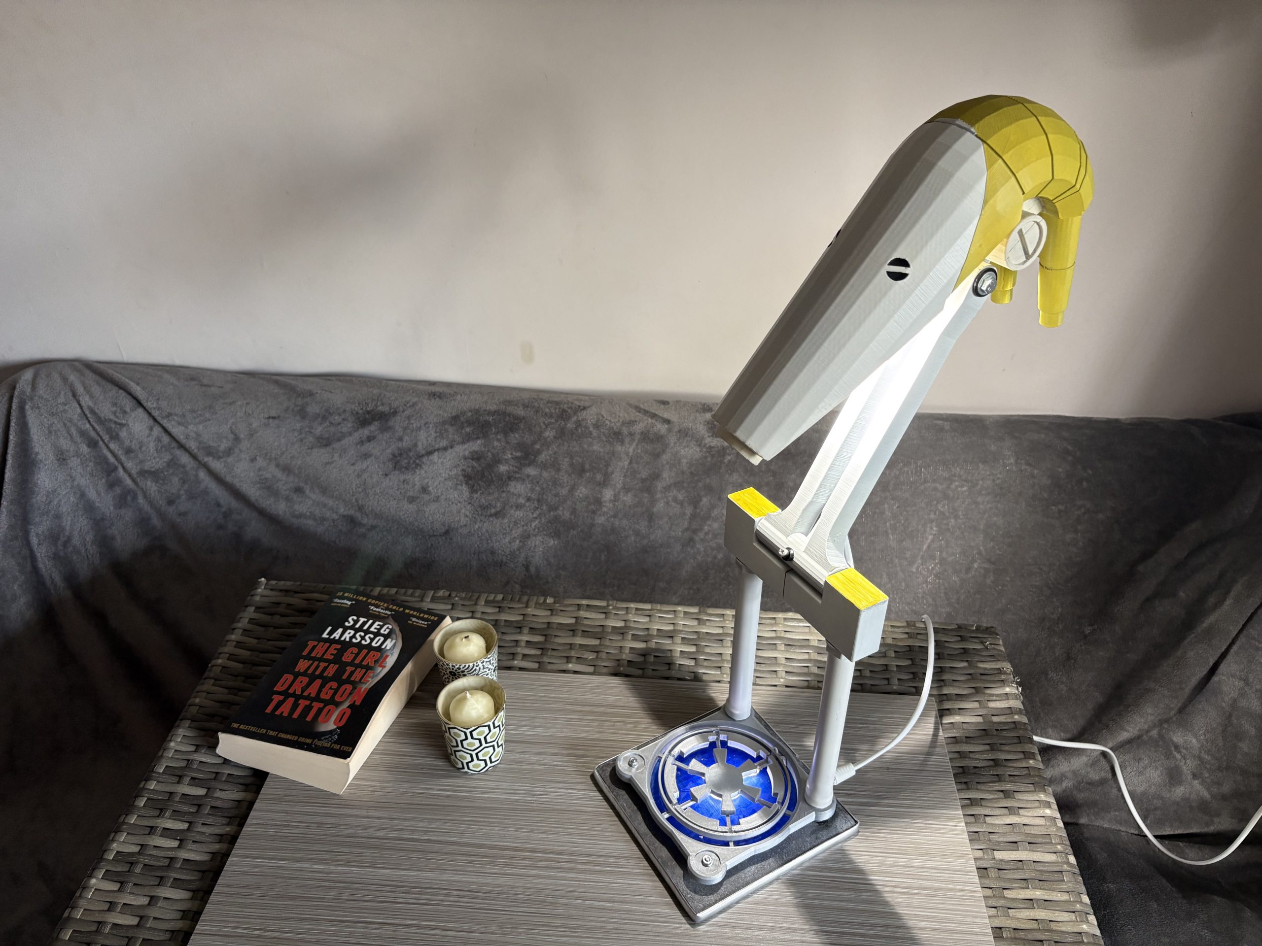 The lovable battle droid from Star Wars is now available as a multi-positional desk lamp. It can be produced in several colour combinations, and is shown here in yellow and beige.